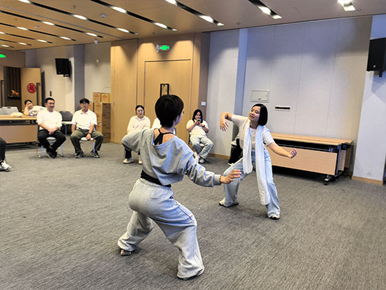 在“动作镜像”与“自由舞动”环节,员工两人一组,通过模仿与扩展对方的动作,体验身体表达的多样性与创造性。过程中不设标准、不比较优劣,每个人都能在安全的环境中尝试突破日常身体习惯,释放被压抑的情绪与能量。
