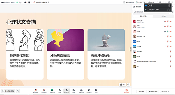 2025年10月22日晚,由红枫社居委主办、安徽徽韵心理咨询有限公司承办的“准妈妈的心理调适与信心增强”线上心理讲座如期开展,国家三级心理咨询师李梅老师,为社区约10位准妈妈们开展了主题孕期心理调适线上讲座。