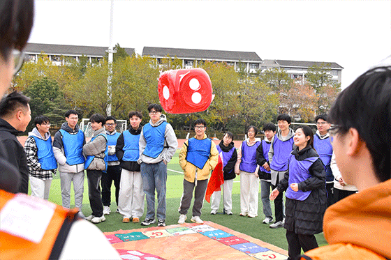 活动分为三个环节,共计150分钟。在热身破冰环节,同学们通过“按摩操”“名声飞扬”等趣味游戏迅速拉近距离,营造出轻松愉快的氛围。随后的“能量传输”项目中,各小组齐心协力,利用能量槽搭建通道,接力运送小球,充分锻炼了团队协作与沟通能力。最精彩的“真人大富翁”环节更是将活动推向高潮,同学们化身棋手、投掷手、智囊团,在任务卡与命运卡的挑战中斗智斗勇,现场笑声不断,气氛热烈。