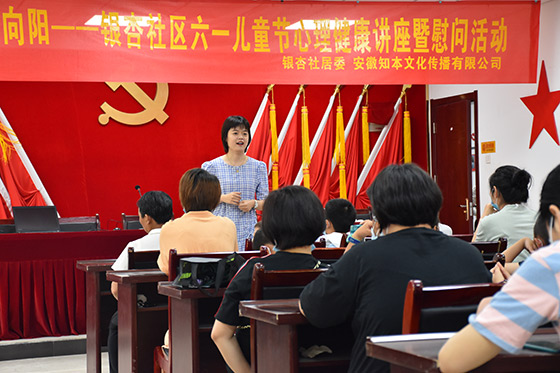 2020年5月29日下午,应银杏社居委邀请,国家三级心理咨询师、徽韵心理咨询师团队成员李梅老师,来到银杏社区活动室,为在场的30位大朋友小朋友们开展了一场主题为“去花开,童心向阳”亲子心理讲座,与在场的爸爸妈妈和小朋友们一同欢度六一,快乐生活。
