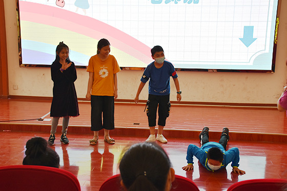 王老师告诉同学们,情绪不是一成不变的,我们不会一整天都快乐,也不会一整天都悲伤;不同的情绪会悄然而至,也会像只小猫一样蹑手蹑脚的溜走,而我们要做的就是如何能够用合适的方法来对待这些不同的情绪。活动到这,王老师将话语权交给这些孩子们,作为小学生情绪问题产生的本体,这些小人儿也必然有最好的解决办法,我们要相信孩子们有力量和资源去解决问题。果不其然,座位上的这些小学生们纷纷举起自己的手,热心的为其他同学的问题献言建策,虽然有些建议让人不禁哈哈一笑,但也有许多回答蕴含着我们成年人想不到的智慧。