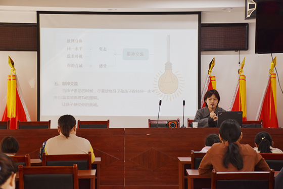讲座中,李老师用鲜活的案例和真实的情景讲解恶语沟通的危害和有效沟通的技巧,提出了与孩子沟通的八字箴言“倾听、尊重、鼓励、信任、守信”,倡导从现在开始做一名“和孩子一起成长”的家长,尊重孩子、接纳孩子、换位思考,建立和谐亲子关系,助力孩子健康快乐成长;在生活中家长们要善于发现孩子的优点,每个孩子都是独特的,父母的赞扬和认可是孩子自信的源泉,学会挖掘并放大孩子的优点,沟通会顺畅很多,亲子关系也会得到促进。