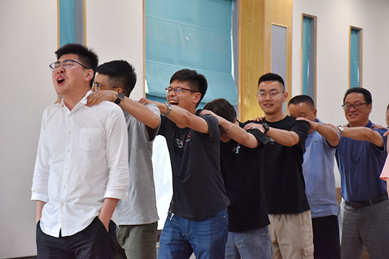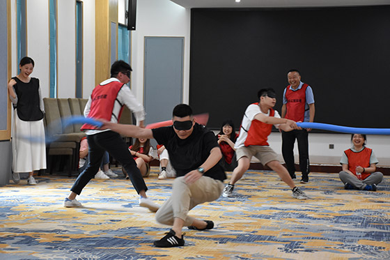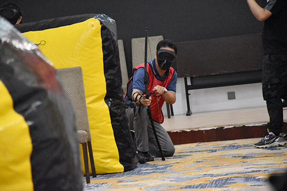 下午,在大家友好的互动中,心理素质拓展活动开始了。活动中,教练带领大家依次进行了团队建设、盲人互打和攻防箭道,在运动中感受团体协作带给个体的支持,在比拼中感受挑战带来的兴奋,在笑声中感受欢乐带给心灵的放松。
