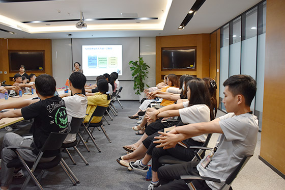 讲座开始,胡老师以“沟通”一词为切入点,通过一个个生动鲜活的案例,深入浅出的教大家如何更高效的进行沟通交流。随后,胡老师结合客服工作,就“如何应对客户的抱怨”这一话题进行了细致的讲解和分析,为与会人员提供新思路、新认识,帮助他们更好地处理工作、提升自己。讲座过程中,胡老师还带领大家进行心理素质拓展活动,营造了轻松愉快的学习氛围。