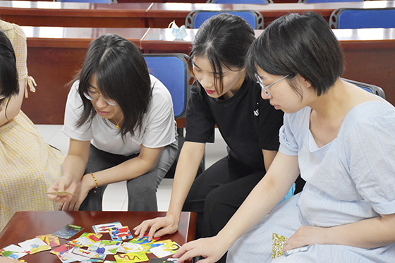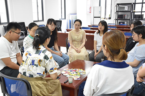 “外面除了我没有别人”王老师这样说到。对于同一张卡牌,不同的人会看到不同的图像,链接到自己内心的不同部分,触发不同的回忆、思维和情感。第一轮活动当中,王老师引导学员们依次对自己抽取的卡牌内容进行描述,然后进行情感的链接,让学员们能够更加明晰这一段时间内的情绪状态。在第二轮的活动中,王老师结合字卡,带领学员们一同探讨自己的情绪来源,并对自己当前的压力进行具体化。