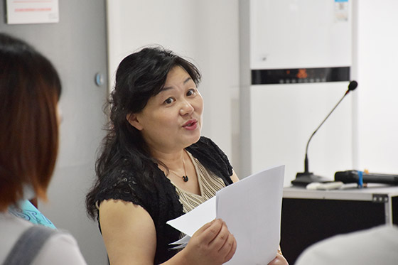 在接下来的活动中,王老师对于学员们的问题一一作出针对性的回答,对于学员们最为关心的——和客户(服务对象)的交往问题,王老师用讲解和演示非暴力沟通这一简单实用的沟通技术来帮助学员们解决,并在活动中留出部分时间,让学员通过角色扮演的方式进行实践演练。