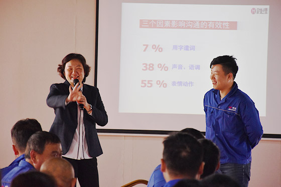 日常工作和生活离不开沟通,讲座还未正式开讲,一个小互动已悄悄发生——胡老师在台上讲,静静的观察台下员工的反应:有人在嬉笑、有人在玩手机、有人看着胡老师、有人在回应胡老师的话。胡老师借着学员们的不同反应,开始了今天的人际沟通讲座。